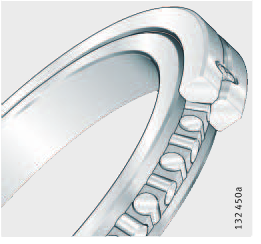 圓柱滾子是X型布置的,一個這樣的軸承就可以承受兩個方向的軸向力、徑向力、傾覆力矩和其它聯(lián)合載荷。因此兩個軸承布置的設(shè)計方案能夠用單個SX軸承布置方式來代替。